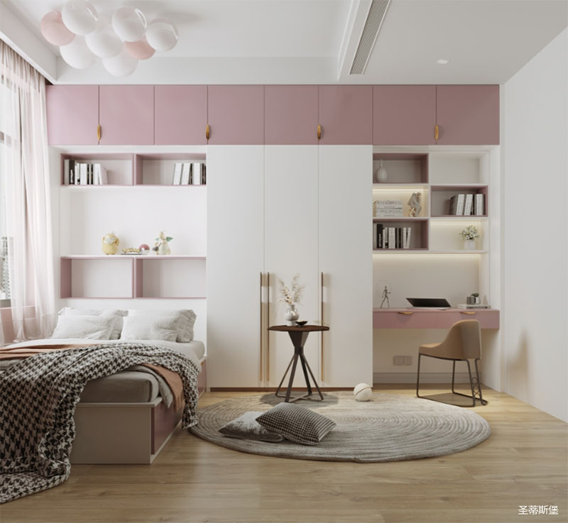 迷人的静谧最为温柔,在浅粉与纯白之间,融合着舒适与少女心并存的空间感受。坐卧对立分隔,形成了两个空间的生活体验,完美的实现了功能与美感的结合,灵动内敛之余,独具深意,营造出更具温暖与时尚化的少女空间。