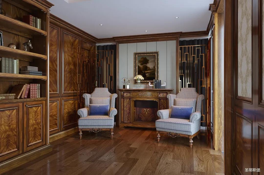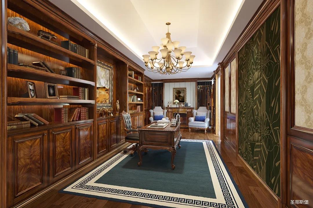 迈进书房,仿佛就来到另一个清丽的世界,抛开身后的尘嚣,恍如隔世般抚慰着辛劳一天的身心。每一物件都经过设计师的精雕细琢,不管是布艺的纹理,木质的雕饰,亦或是真皮的质感,都让大美的豪华一目了然。粗狂中透着柔美的线条,浑厚复古的色调,让空间显得深沉而含蓄,置身其中即可感受到传统的历史痕迹与浑厚的文化底蕴。