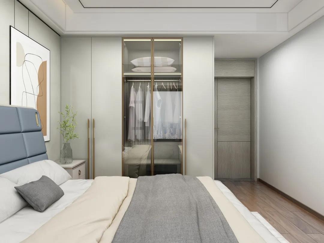 合理利用空间,这样主卧便集卧室、衣帽间为一体,居住舒适度大大提升。营造了一个舒适度满满的私密空间。