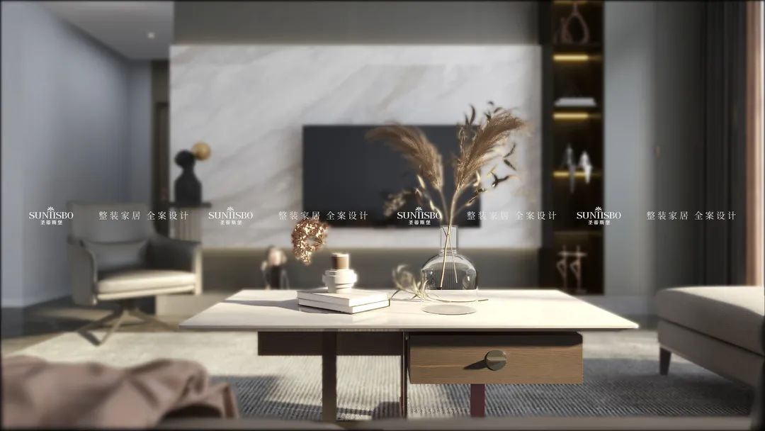 本案业主本人是一对年轻的90后小夫妻,他们对设计要求较高,崇尚极简主义生活,也具有一定的艺术审美标准。本案设计师与业主沟通后,设计初稿就得到肯定,在形式材质上大量运用石材、木材、玻璃、皮革,搭配简约的家具,注重整体统一,表达居住者和谐统一又独特审美的生活方式。