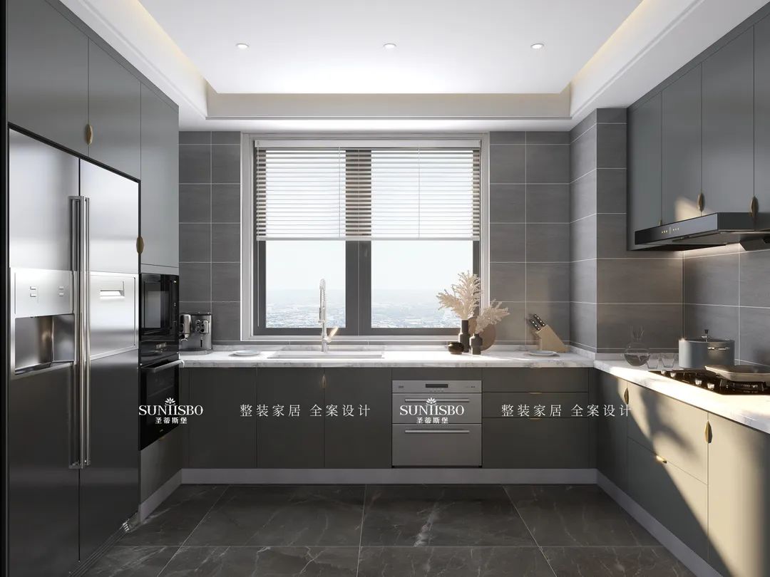 餐厅与厨房仅一面之隔,全案设计师却巧妙的将光影灵动的引入室内空间,让用餐时刻可坐揽阳光带来的自然温馨。