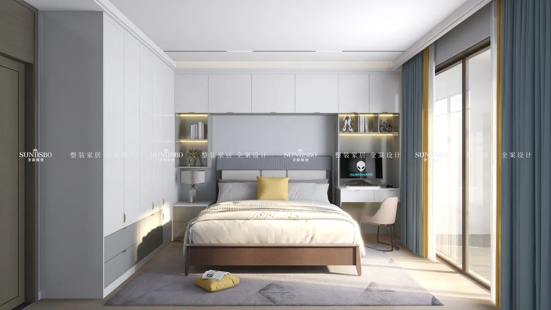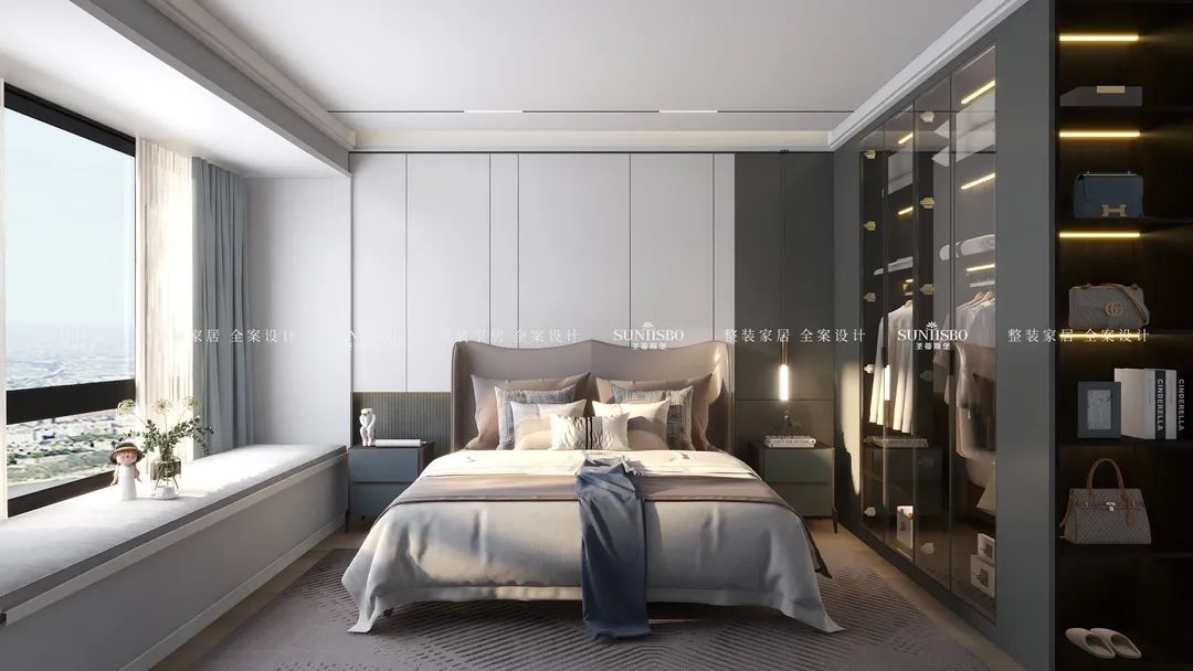 ②主卧中打造衣帽间,增强储物的同时又保持一定的独立性。